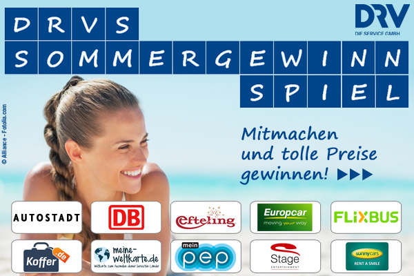 Mitmachen und tolle Preise gewinnen!Machen Sie mit beim großen DRVS-Sommergewinnspiel und sichern Sie sich die Chance auf attraktive Preise unserer Travel Industry Card-Partner. Viel Glück! Alle Informationen zum Sommergewinnspiel finden Sie hier. |